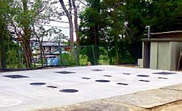 豊橋市立天伯小学校は、豊橋市の第二指定避難所(第一指定避難所の収容能力が超えた場合に開設する避難所)に指定されている施設であり、太陽光発電設備等を設置して防災機能の強化を図っている。本施設には、沈殿分離・接触ばっ気方式のRC製の浄化槽が設置されており、沈殿分離槽上部のマンホールに災害用マンホールトイレ専用蓋が設置されている。災害時は、ここにマンホールトイレを設置することで、トイレの使用が可能となる。